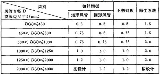 風管系統(tǒng)中,在某一靜壓下通過風管、附件及其接口,在單位時間內(nèi)泄漏或滲入的空氣體積量。